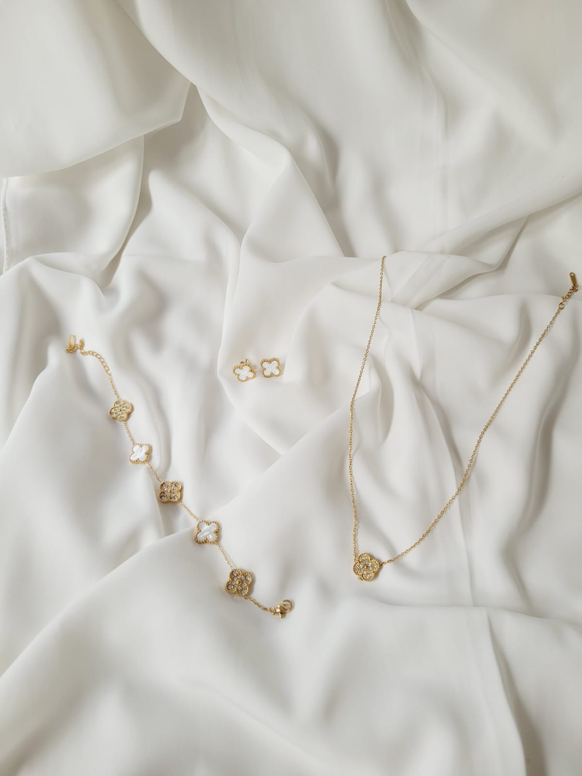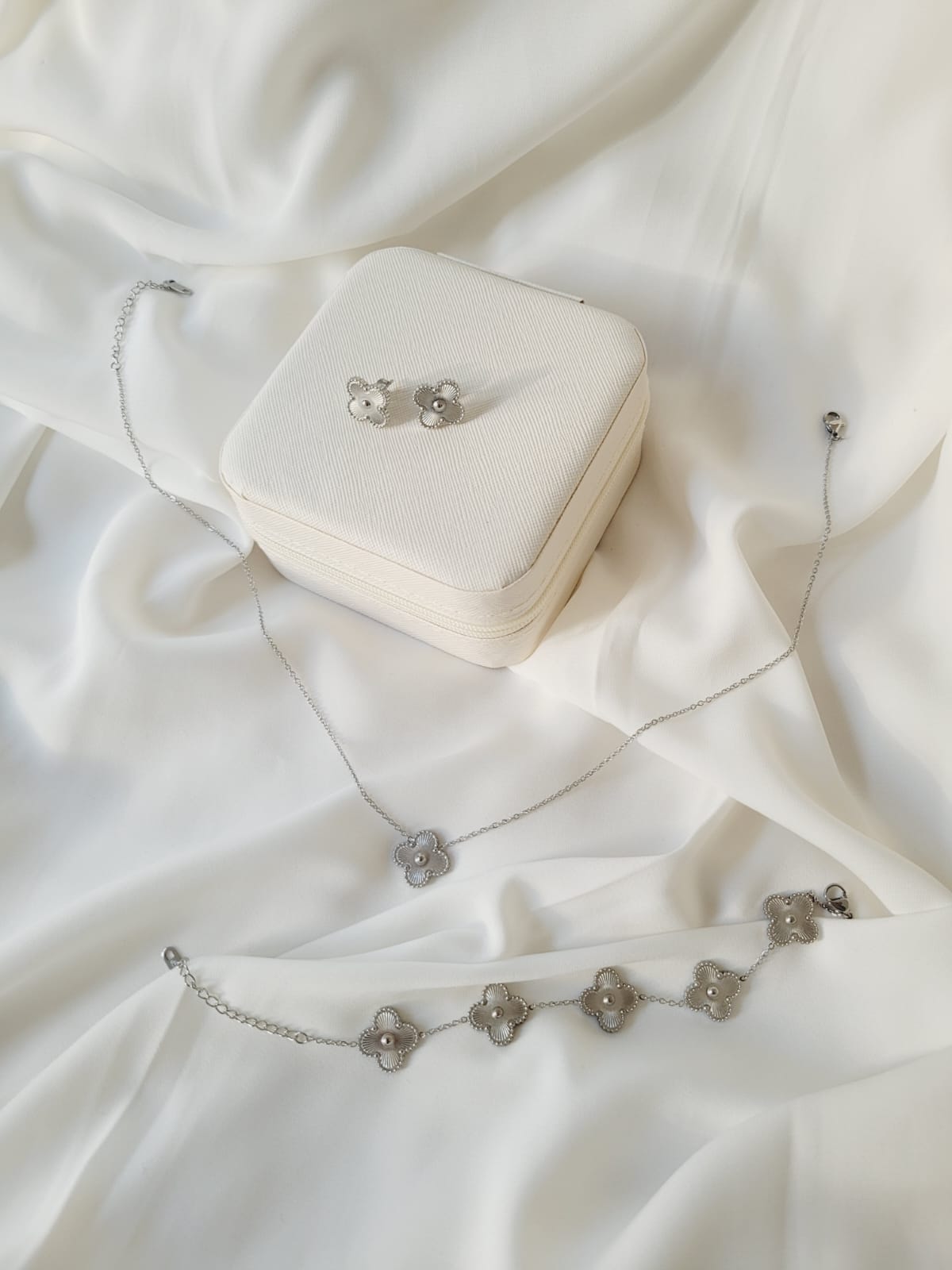 This Silver Clover Set is crafted using stainless steel, ensuring quality and providing waterproof and tarnish-free protection. This product is designed to last, providing lasting style and beauty for years to come.